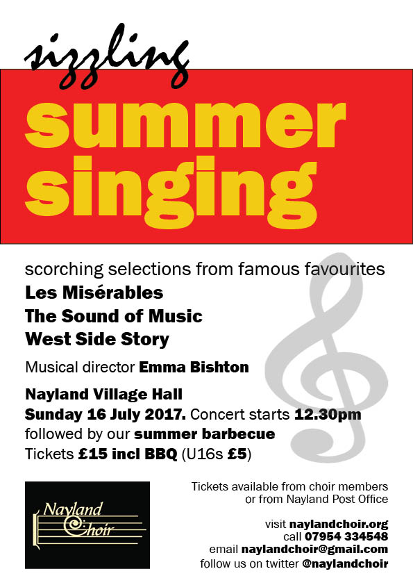 Sizzling Summer Singing. Selections from The Sound of Music, Les Miserables and West Side Story, with barbecue.