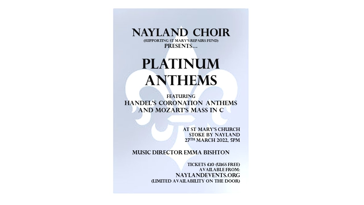 Requiem – Verdi. A joint venture with Bury Bach Choir in May and The Really Big Chorus and the English Festival Orchestra in the Albert Hall in July.
