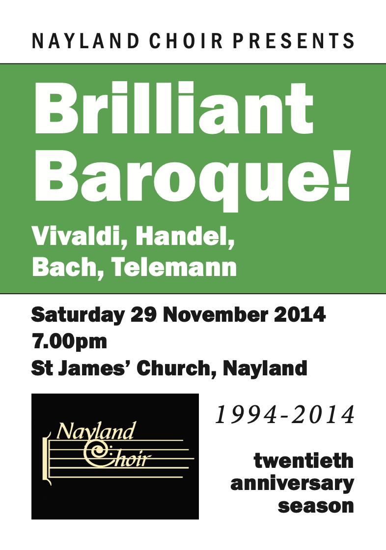 Brilliant Baroque! – a look back at some of our greatest hits including Vivaldi’s Gloria, and excerpts from Handel’s Messiah and Dixit Dominus, and Bach’s St John Passion.