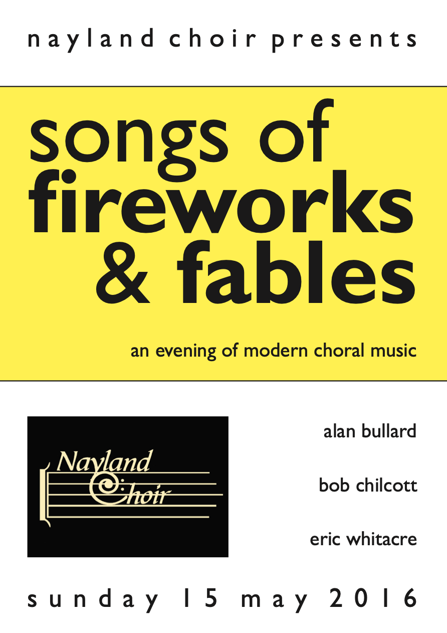Songs of Fireworks and Fables – modern choral music by Alan Bullard, Bob Chilcott and Eric Whitacre.