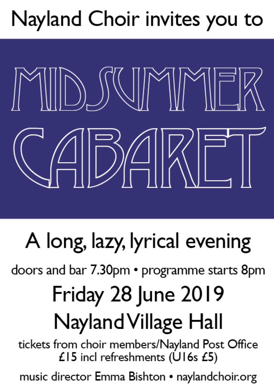 Another Openin’, another show (Kiss me Kate) – Cole Porter; I know a bank – Sarah Quartel; Willow Song – Alan Bullard; How sweet the moonlight sleeps – Henry David Leslie; Fear no more the heat o’ the sun – Gerald Finzi; Where the bee sucks, there suck I – Thomas Arne; Kiss me Kate medley – Clay Warnick/ Cole Porter; Now is the month of May – Thomas Morley; six pieces from Songs and Sonnets – George Shearing; West Side Story choral suite – Leonard Bernstein, Stephen Sondheim, arr. Mac Huff