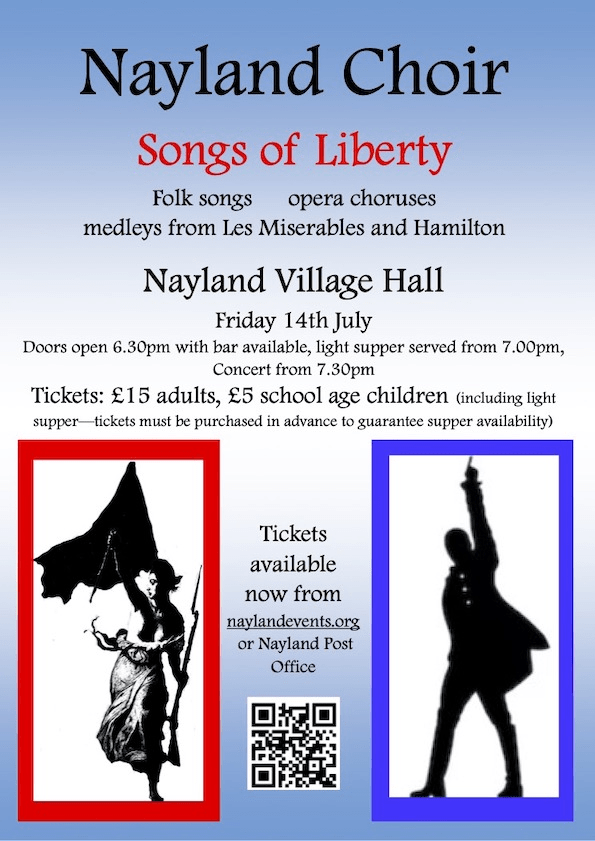 La Marseillaise – Claude Joseph Rouget de Lisle; I wish I knew how it would feel to be free – Billy Taylor, arr. Emma Bishton; Chorus of the Hebrew Slaves (from Nabucco) – Guiseppe Verdi, Temistocle Solera; Polotsvtsian Dance (from Prince Igor) – Alexander Borodin, arr. J Hughes; The fields of Athenry – Pete St. John, arr. Emma Bishton; Skye boat song – traditional (Scots), arr. J Hughes; Liberty Song – William Boyce, John Dickinson; Highlights from Hamilton – Lin-Manuel Miranda, arr. Lisa DeSpain; The march of the women – Ethel Smyth, Cecily Hamilton; Every night when the sun goes in – Traditional (Appalachian), arr. Emma Bishton; All my trials – traditional spiritual; medley from Les Miserables – Claude Michel Schonberg, Alan Boublil, Jean- Marc Natel, Herbert Kretzmer, arr. Ed Lojeski; Aquarius/ Let the sunshine in – Galt MacDermot, James Rado, Gerome Ragni, arr. Greg Gilpin